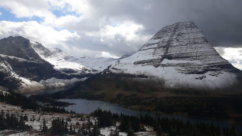 Embark on the Hidden Lake Overlook trail right from the Logan Pass Visitor Center parking lot. This 2.7-mile out-and-back hike is well-traveled and would be considered an easy hike. Walk past the visitor center and onto the boardwalk. You maybe will even see a Mountain goat or two, maybe some other wildlife while you head on in. There is no shortage of scenery in your 540 ft of elevation gain. If you hit this trail early enough in the summer, you will also get to enjoy some of the snowfall that keeps everything green and lush for us to be able to enjoy in the summer. Parking is limited in the season, so you will want to start early so you can snag a spot or use the free shuttle system in the park. There’s nothing hidden once you get to the lookout, as you will have panoramic views as well as Bearhat Mountain as the prominent feature above Hidden Lake.